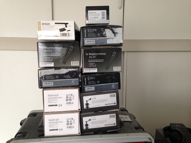 Zwei weitere Mikrofone für die AMP-Abnahme: das E906 von Sennheiser. Damit besteht die Sammlung aus 63 Mikrofonen. Das älteste wurde 1975 gekauft, ebenfalls ein Sennheiser, ein MD 421 mit großem Tuchel.